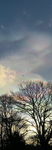Polar stratospheric clouds - or nacreous clouds - are pastel-hued iridescent clouds located in the stratosphere which can usually be seen at high latitudes. They form at altitudes of 15,000 to 25,000 metres and are pretty rare to see, especially in the UK.